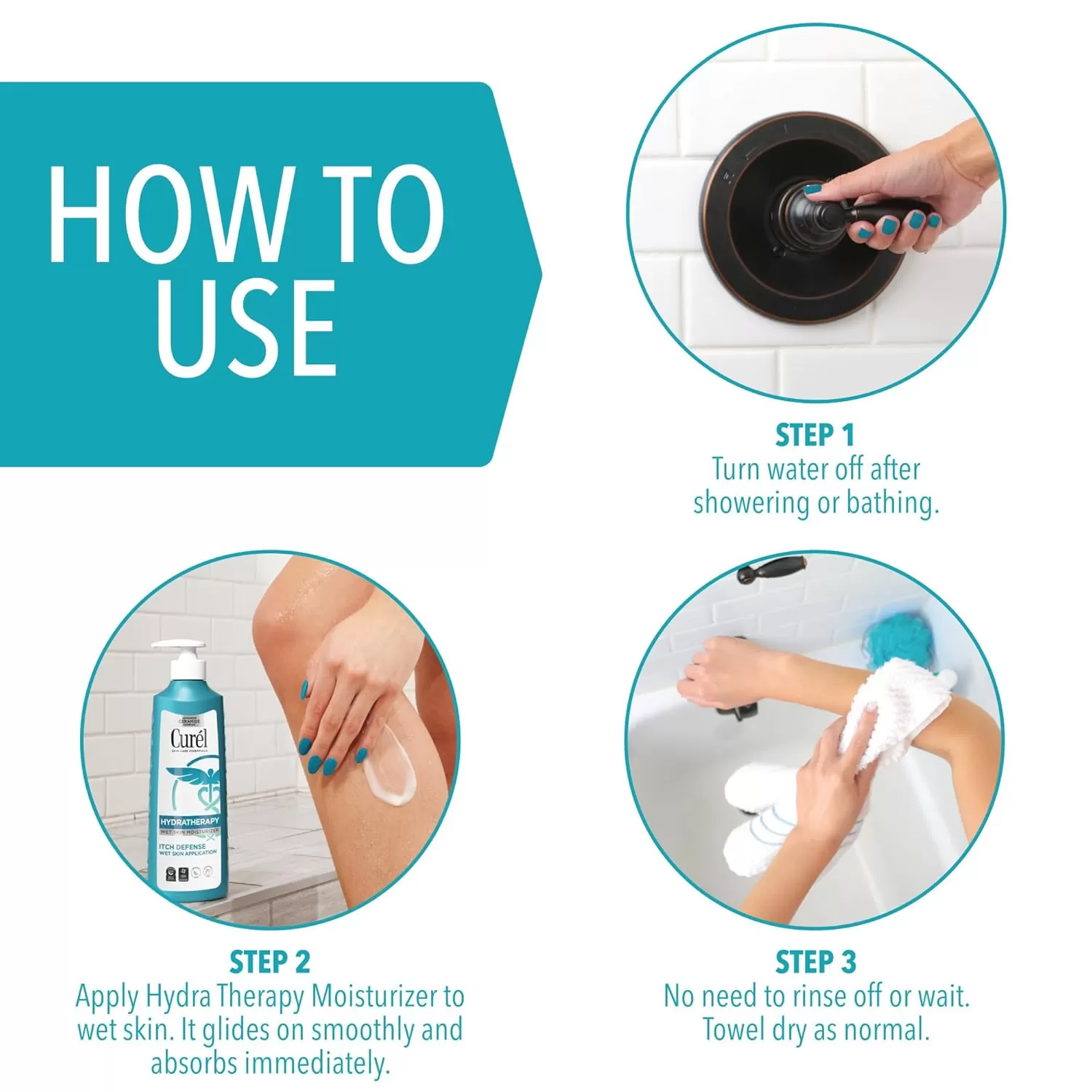 Curel Hydra Therapy, Itch Defense Moisturizer, Wet Skin Lotion, 12 Ounce, with Advanced Ceramide Complex, Vitamin E, & Oatmeal Extract, Helps to Repair Moisture Barrier