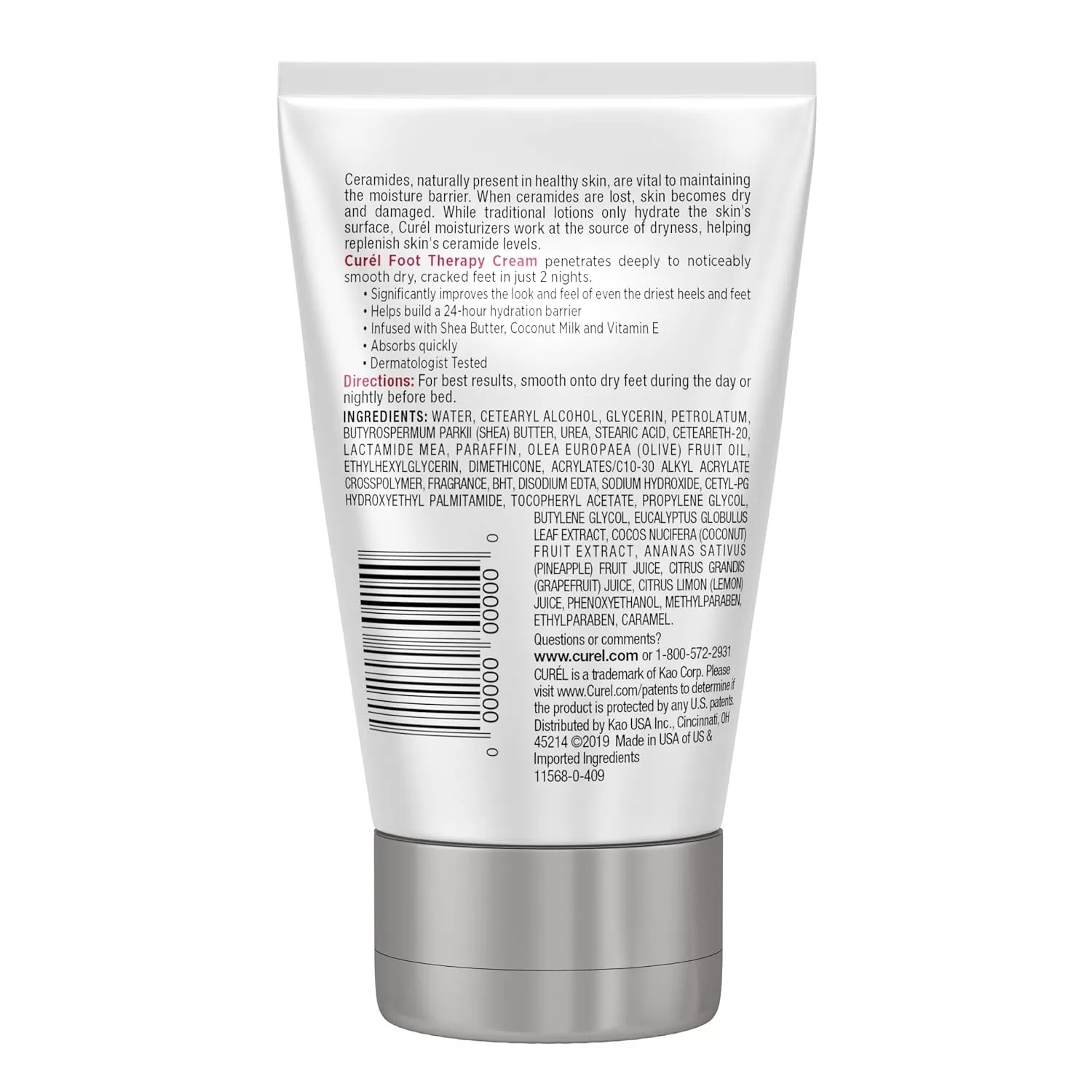Curel Foot Therapy Cream penetrates deeply to noticeably smooth dry, cracked feet in just 2 nights. Infused with Shea Butter, Coconut Milk and Vitamin E, this cream significantly improves the look and feel of even the driest heels and feet. Satisfaction Guaranteed. Limitations may apply.