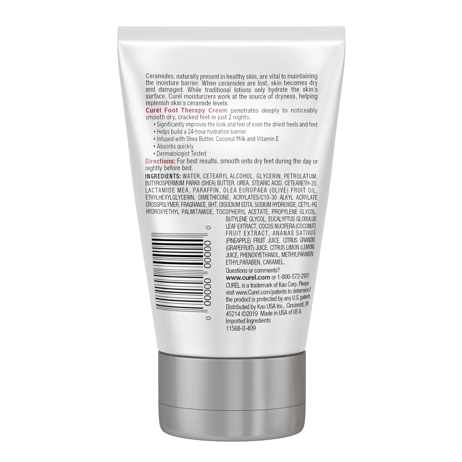 ABSORBS QUICKLY – Curel Foot Therapy Cream, with Advanced Ceramide Complex, restores skin's ceramide levels to help retain moisture and prevent symptoms of dry, cracked feet and heels.