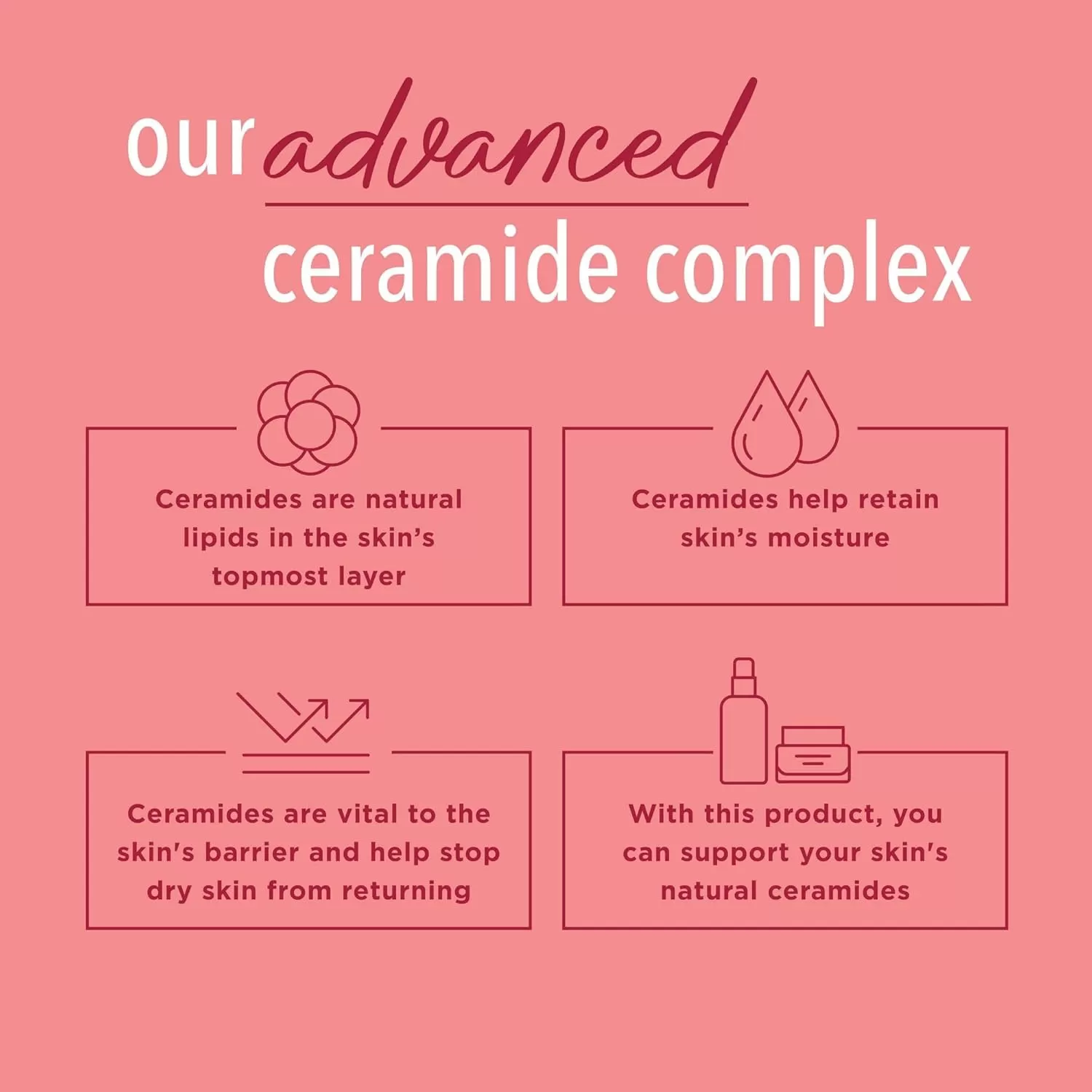 SKIN REPAIR – With Advanced Ceramide Complex, the lotion restores skin's ceramide levels to help retain moisture and prevent symptoms of dry, tight skin from returning